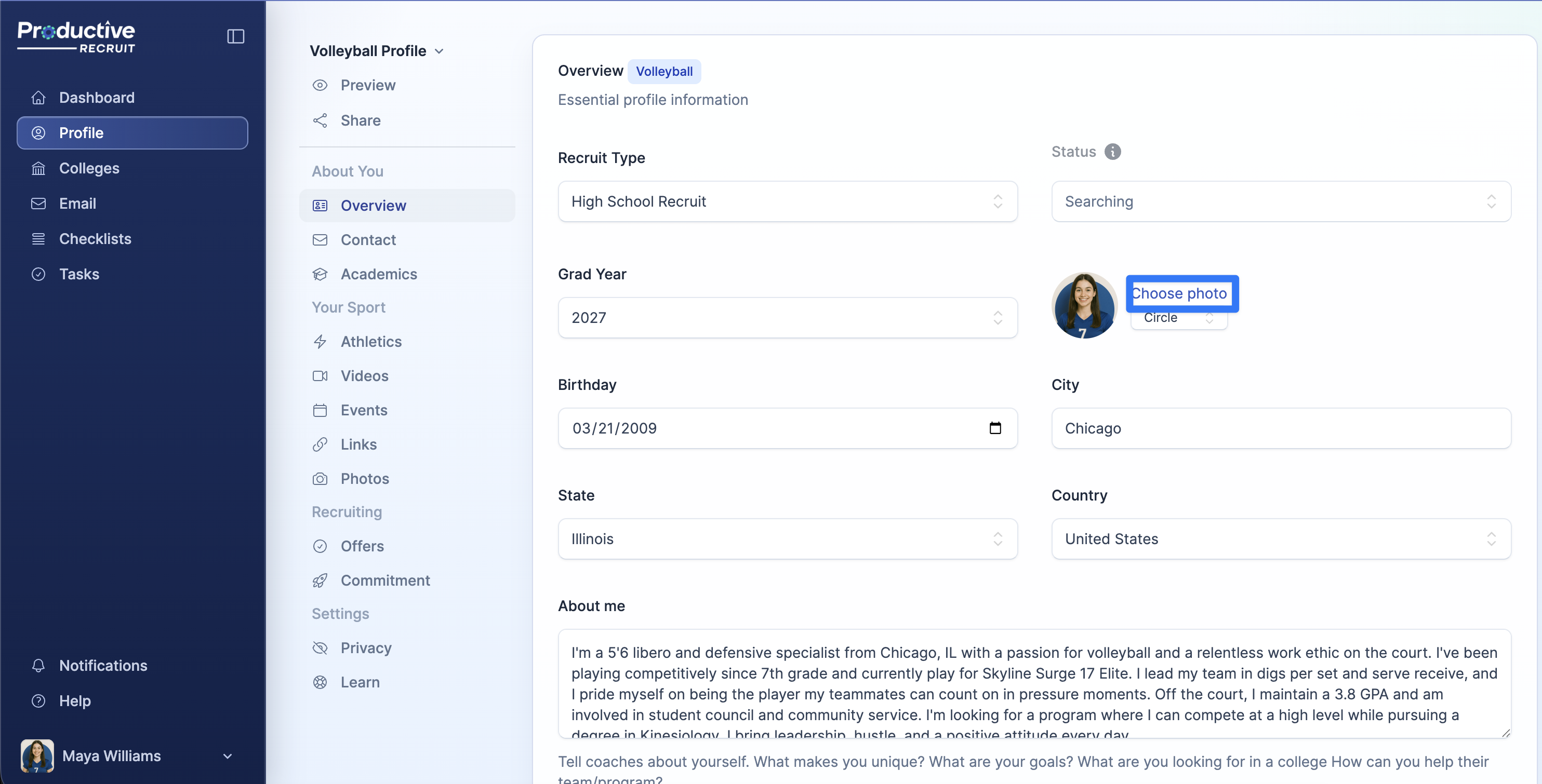 1. Click the Choose photo link next to your profile avatar to start updating your profile picture.
