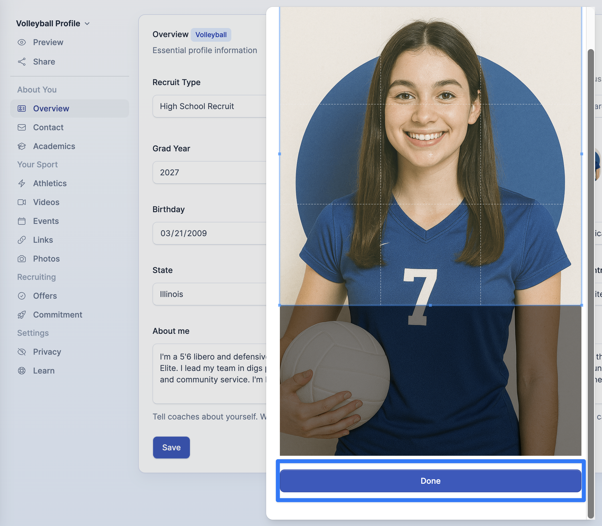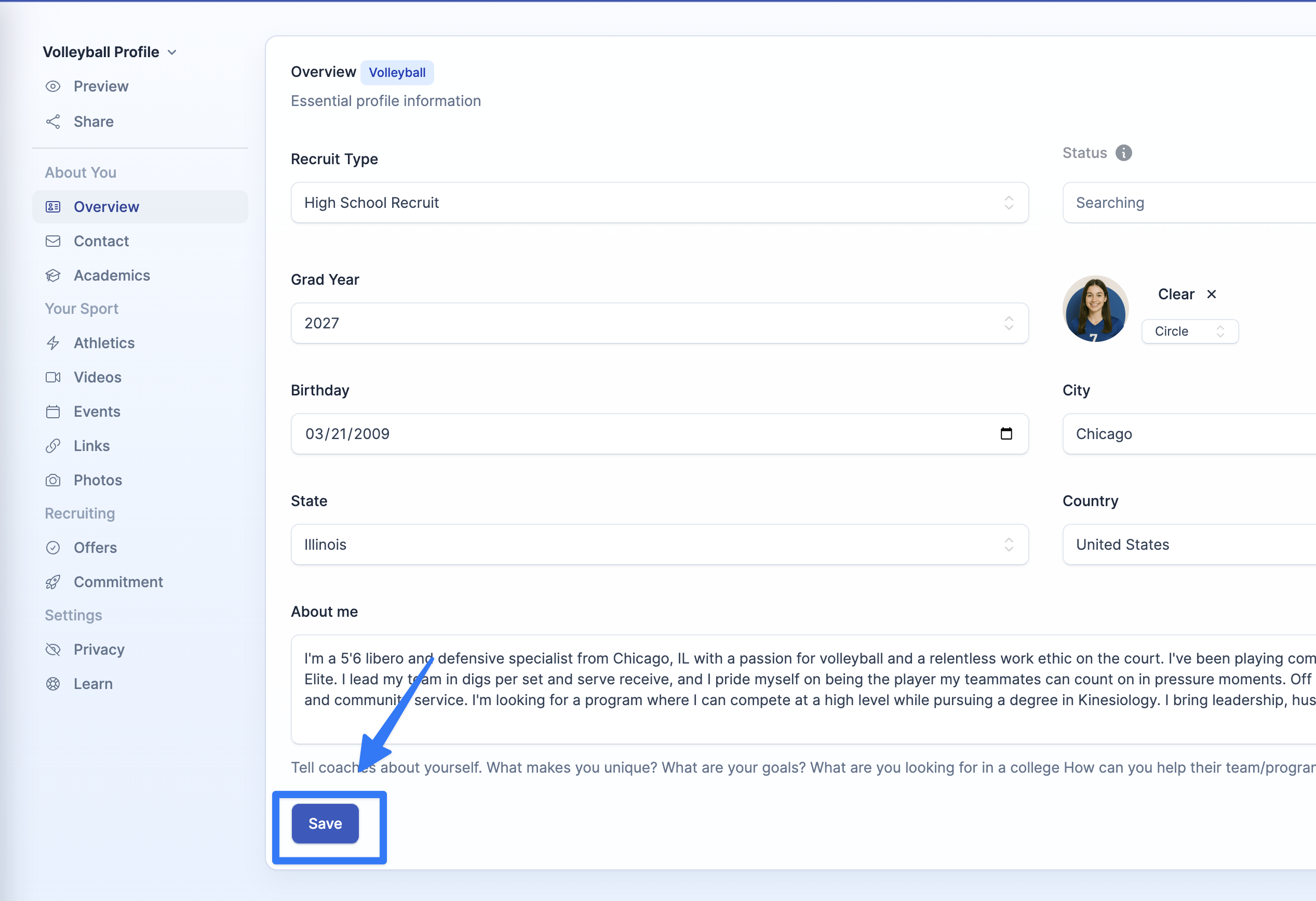 3. Click the Save button to apply your new profile photo and any other changes to your profile.