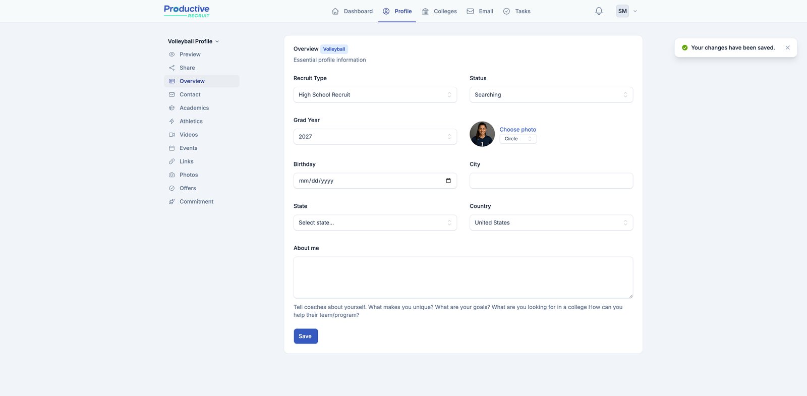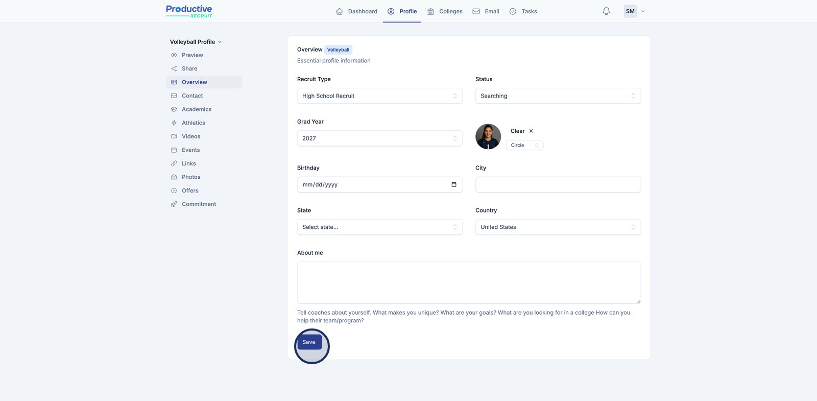 4. Click the Save button to apply your new profile photo and any other changes to your profile.