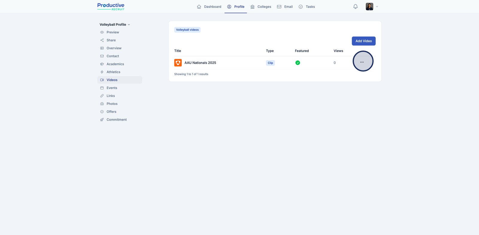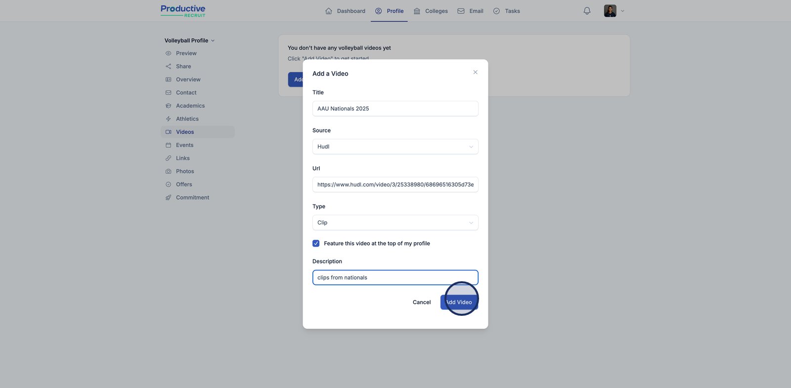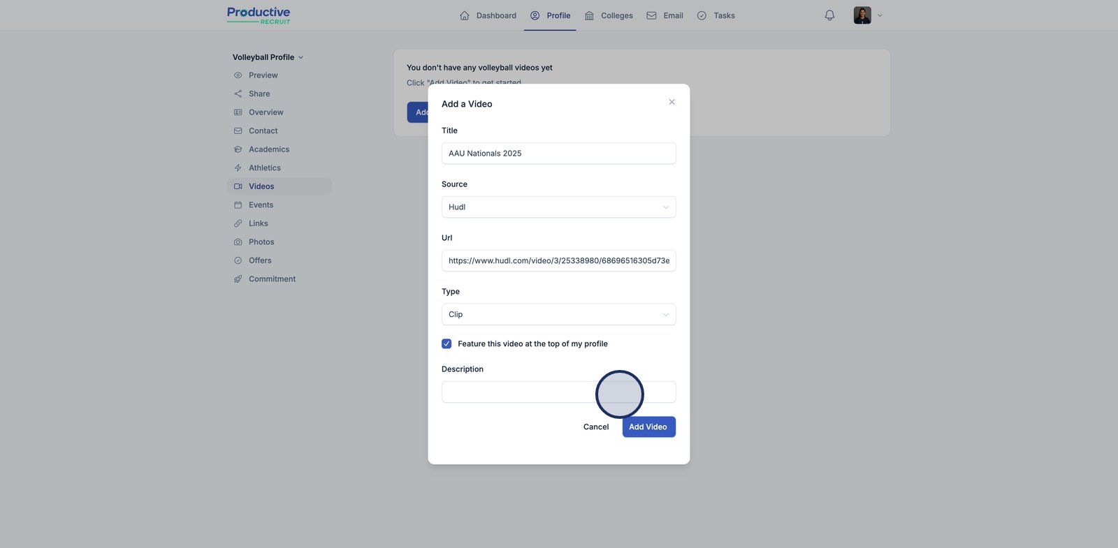 1. Begin adding a video by clicking the Add Video button in your profile's Videos section.