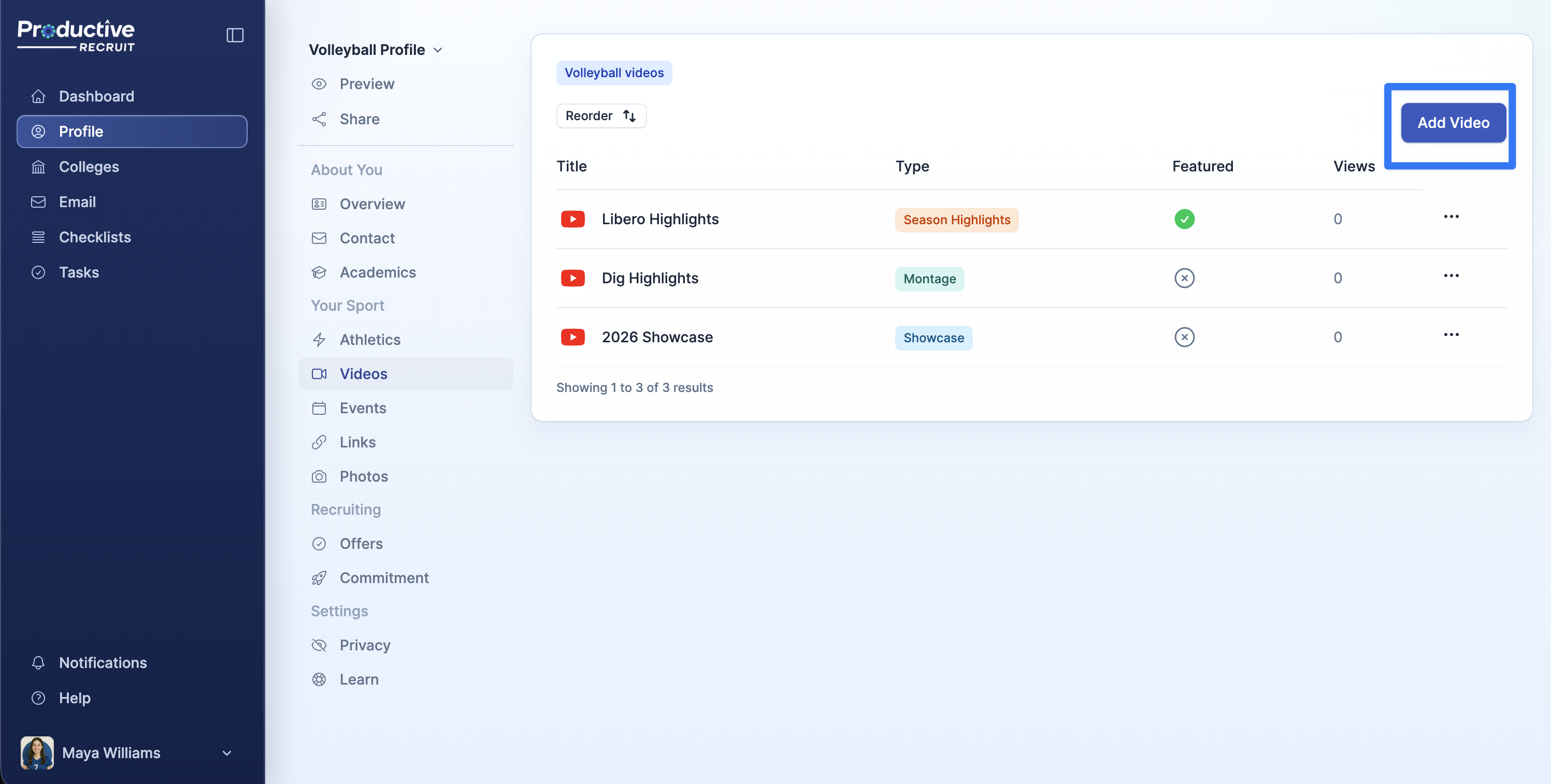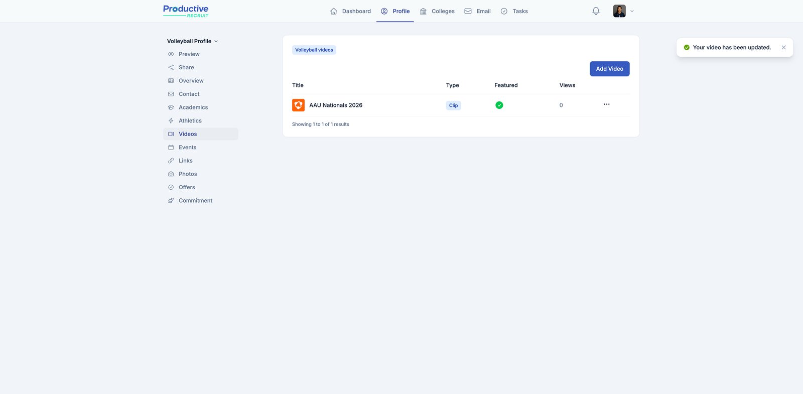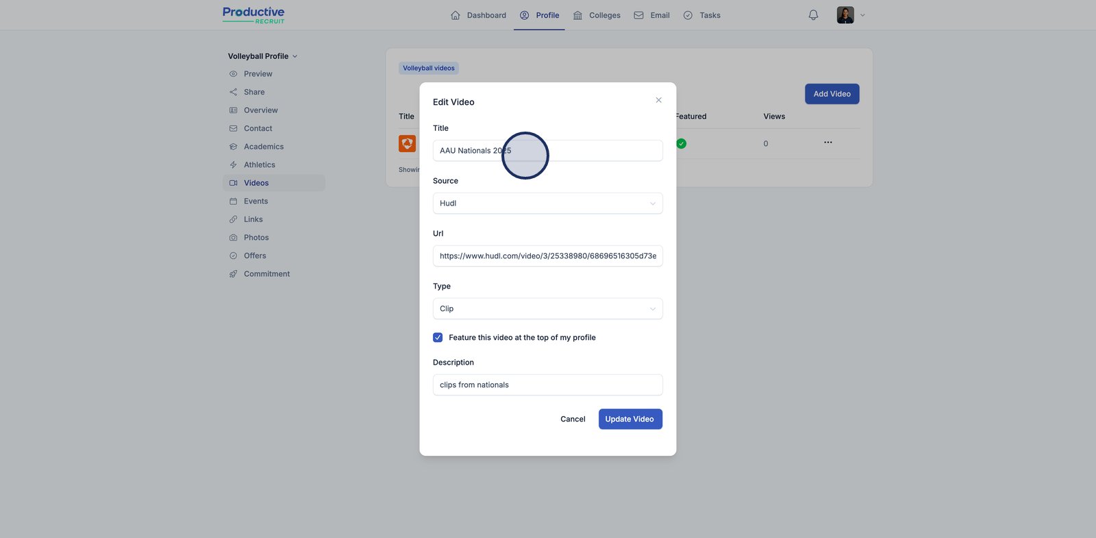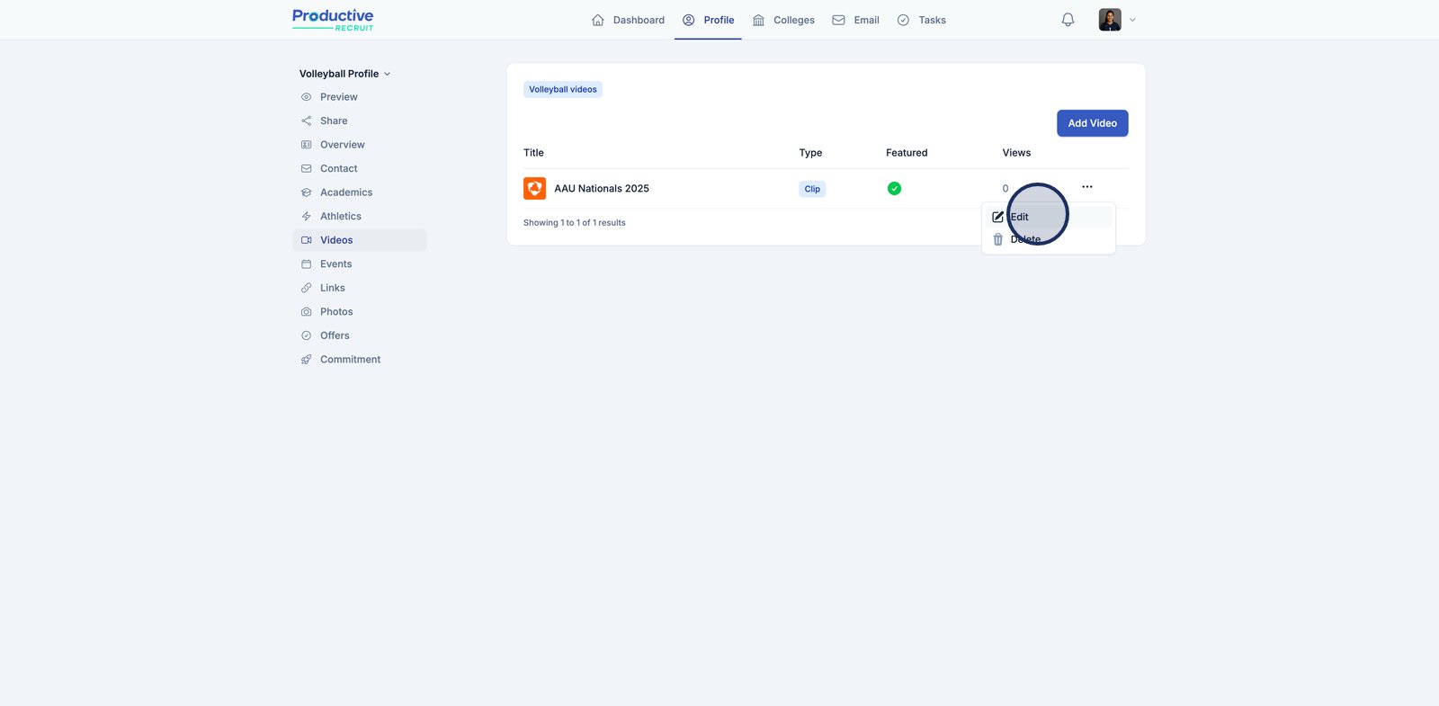 1. Begin adding a video by clicking the Add Video button in your profile's Videos section.
