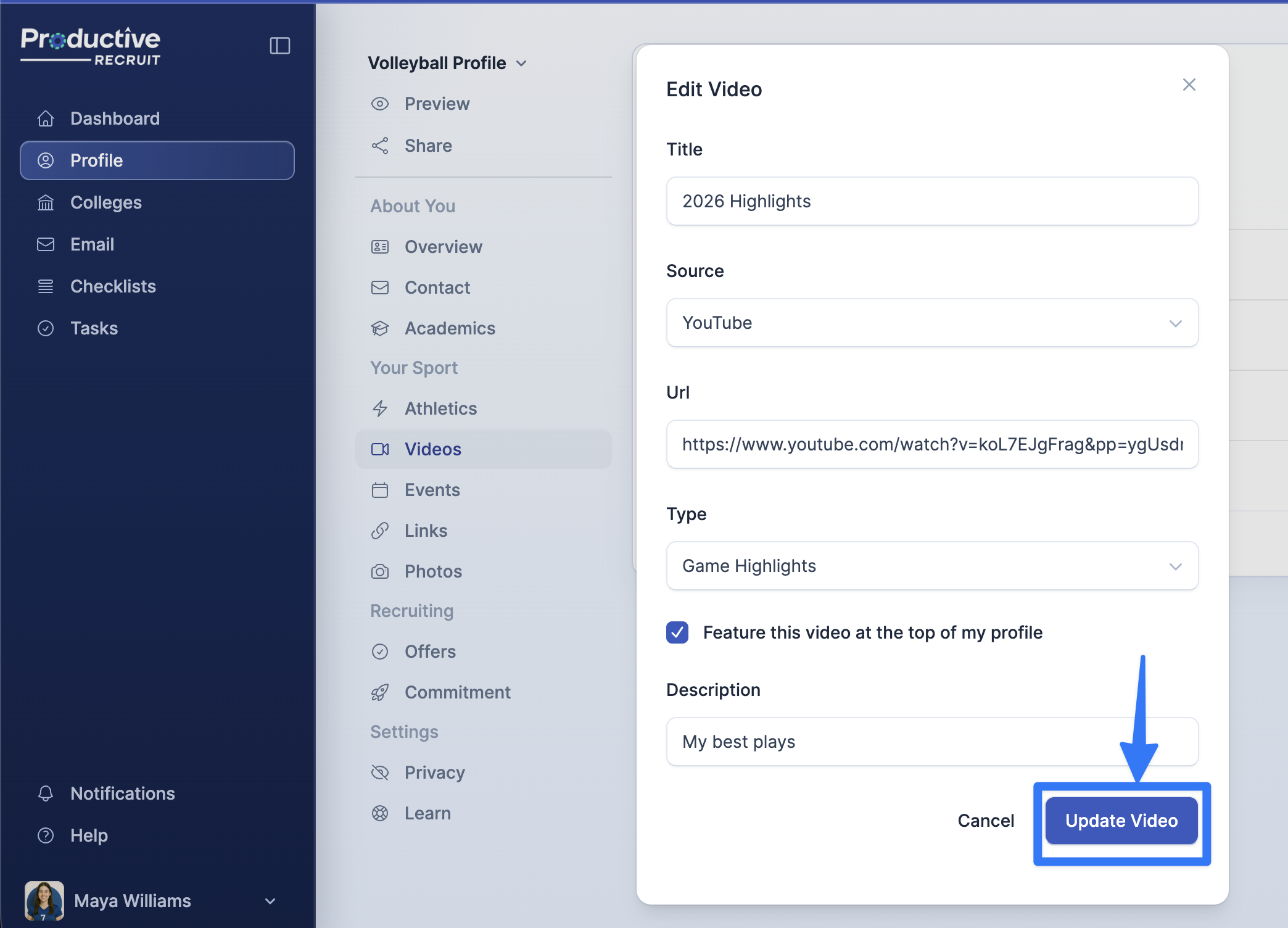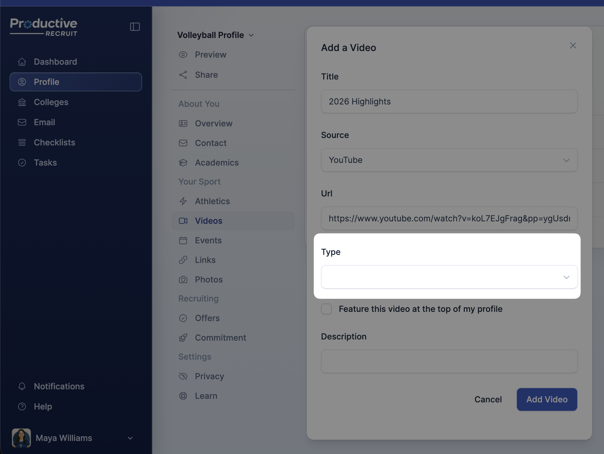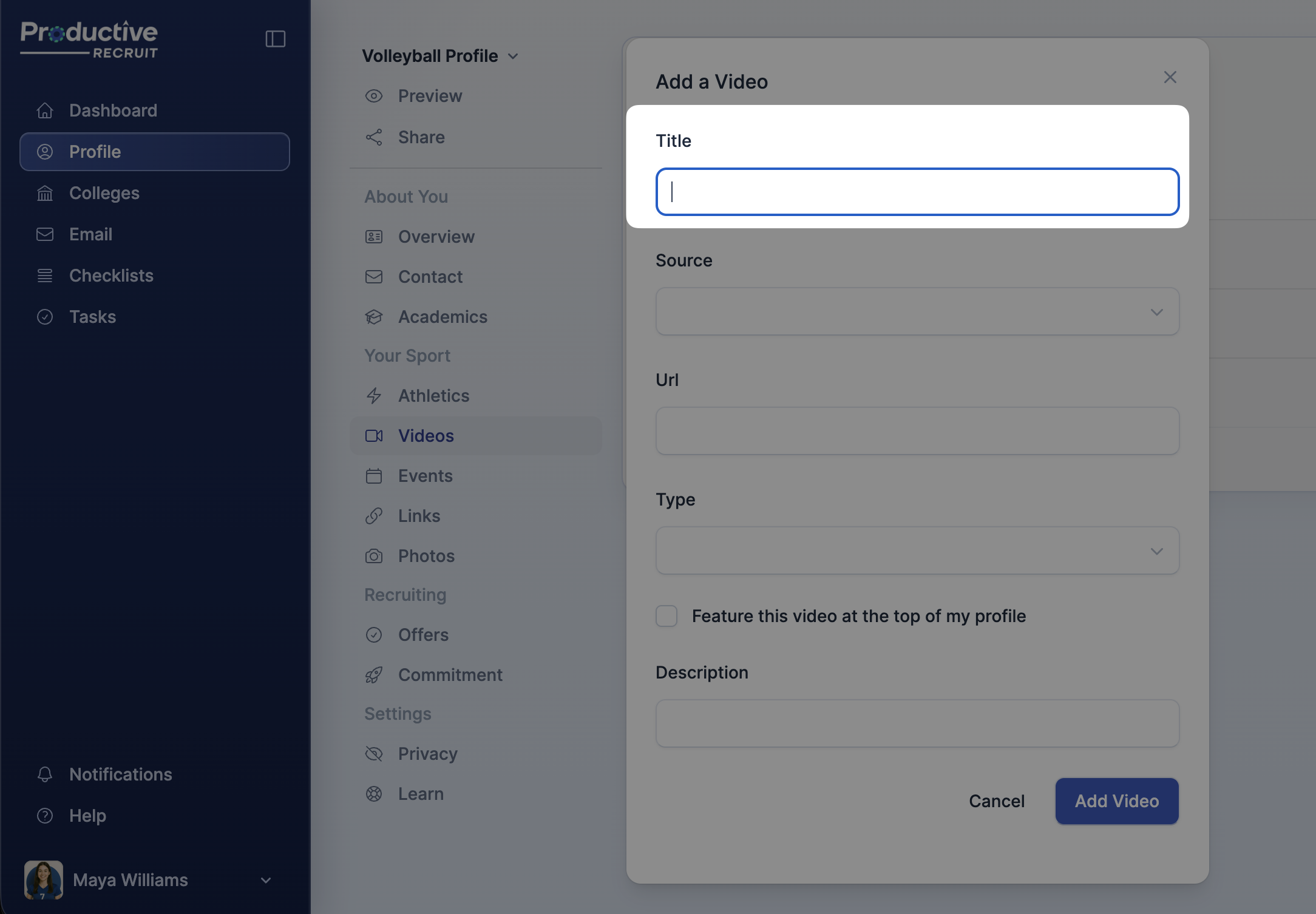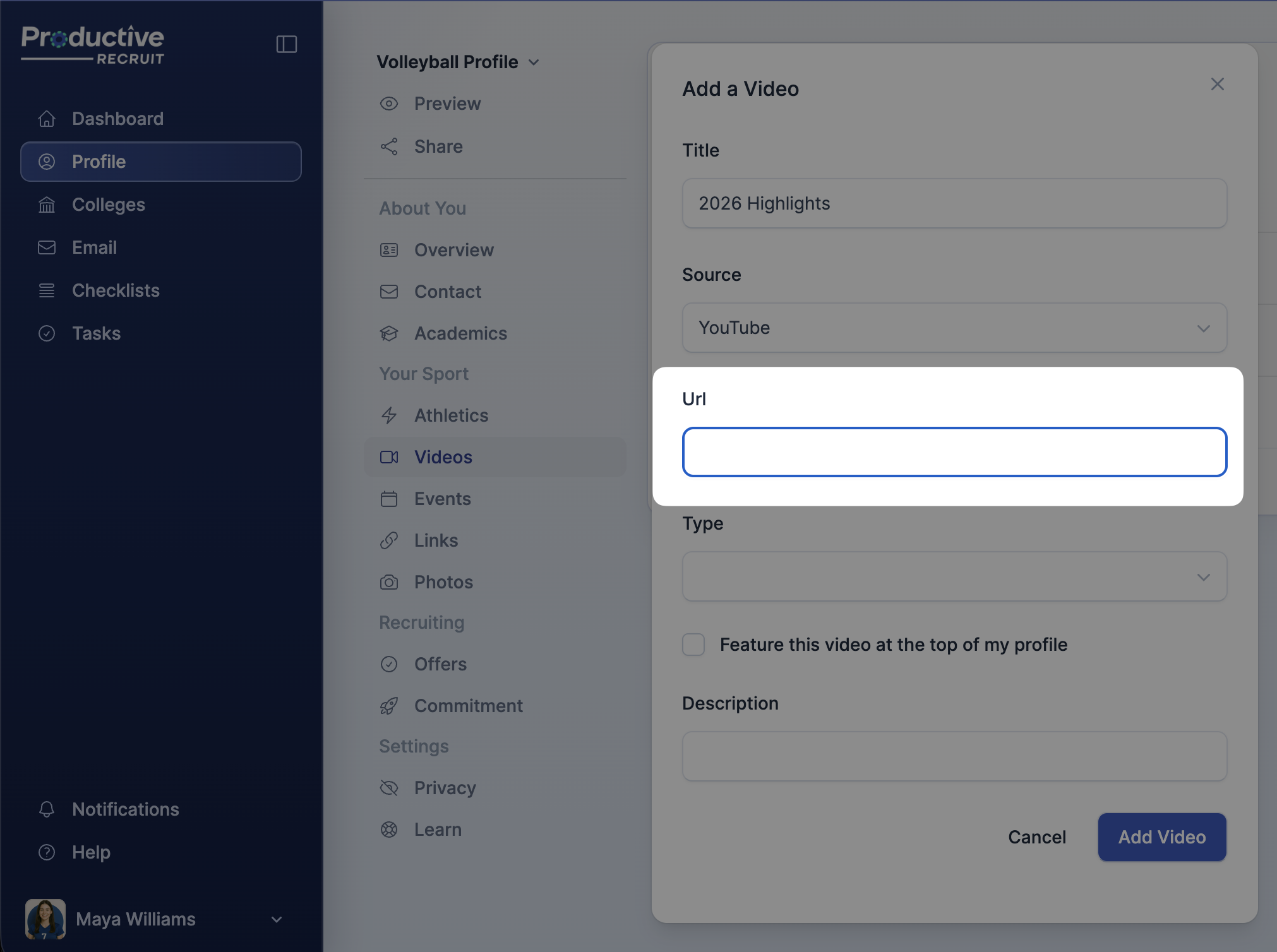 8. Finish by clicking Add Video to upload your video to your profile.