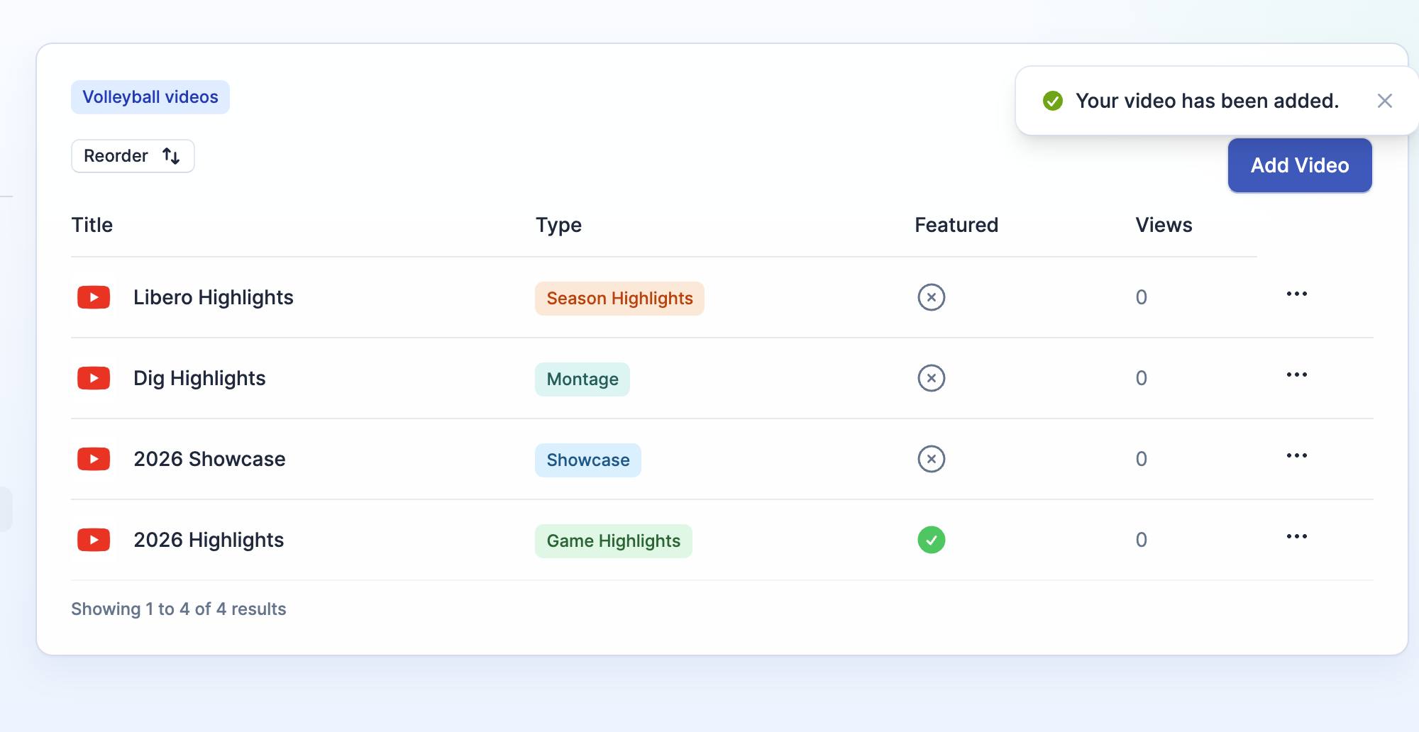 💡 YouTube, Hudl, Balltime, and Vimeo are natively supported. You can add links to other platforms with the "Other" option.