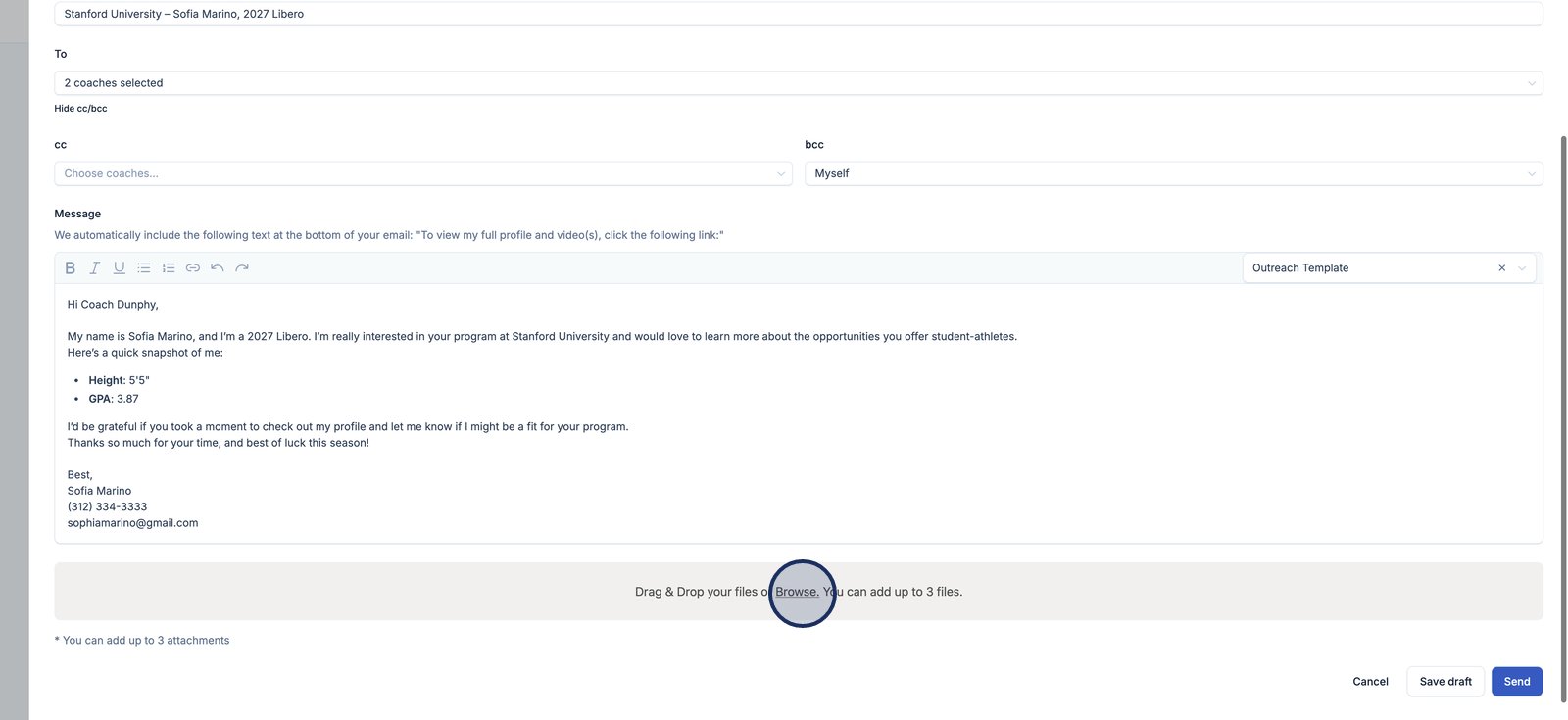 10. Attach relevant files, such as a resume or photos, to strengthen your outreach.