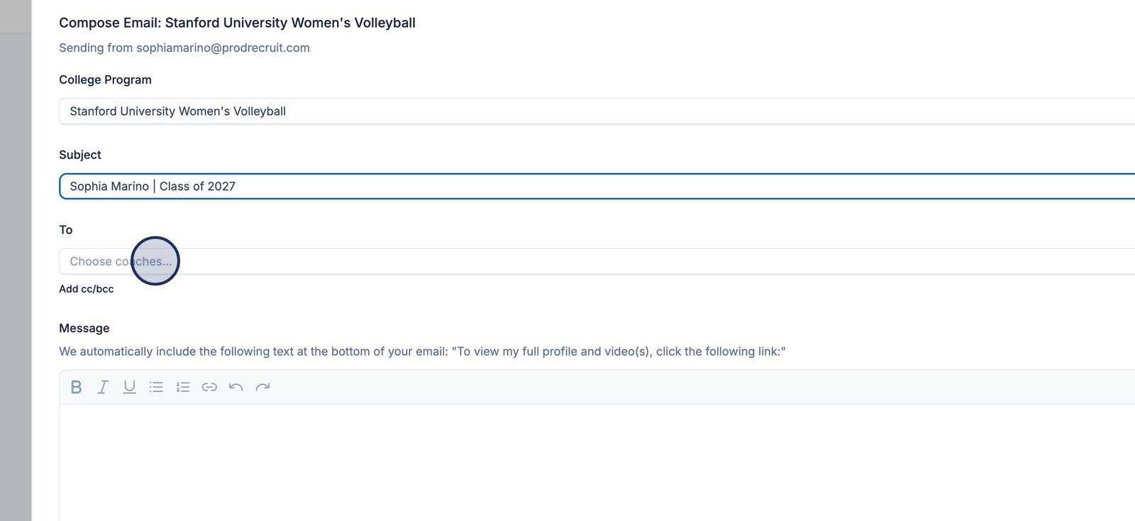 5. Choose which coaches should receive your email. You can contact one or more coaches at a time.